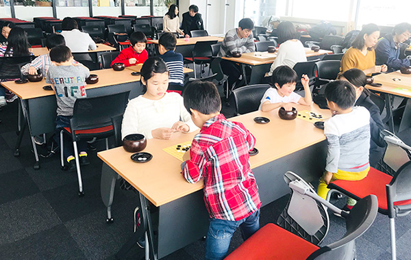 IGOホールディングス(株)井桁健太氏を講師にお迎えして、小学生を対象とした囲碁初心者向けのワークショップを行いました。まったく囲碁を触ったことも見たこともない子がほとんどの中、まずは一通りのルールや考え方をレクチャー。その後、先生vsこども達全員という囲碁ゲームがスタート。一手一手こどもたち同士で連携を取り合い、なんと一目違いで見事先生に勝利!参加者同士で対局したり、保護者の皆様にも積極的にご参加いただき、盛況のうちに終了しました。