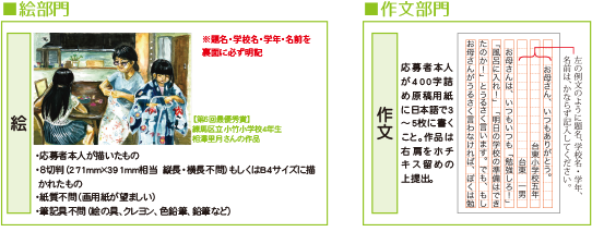【作文部門】 【絵・写真部門】のいずれかをご選択いただき、ご応募ください。